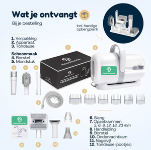 Aanpasbare verzorging: De meerdere opzetstukken stellen je in staat om verzorgingssessies aan te passen aan de specifieke behoeften van je huisdier, of het nu gaat om trimmen, ontverharen of nagelverzorging.
