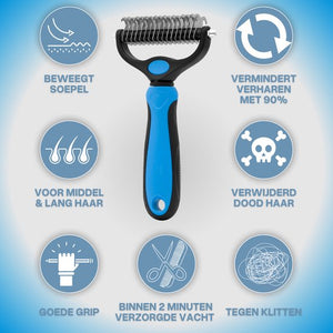 Efficiënt ontklitten: De dubbele kant van de borstel verwijdert snel en effectief knopen en klitten, waardoor het haar van je huisdier weer glad en klitvrij is.
