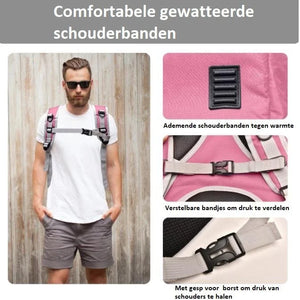 Onze draagrugzak is ontworpen met ademend mesh-materiaal dat zorgt voor een uitstekende luchtcirculatie. Dit innovatieve ontwerp houdt de rugzak koel en zorgt ervoor dat je kat altijd genoeg zuurstof krijgt, zelfs tijdens langere ritten of avonturen. Dankzij het ademende netwerk blijven de temperatuur en vochtigheid in de draagzak op een comfortabel niveau, wat bijdraagt aan het welzijn van je kat. Jouw viervoeter zal zich altijd fris en relaxed voelen, ongeacht de reisafstand!