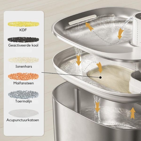 Veel katten krijgen nier- en urinewegproblemen door onvoldoende hydratatie. Ons 6-laags filtersysteem zorgt voor verse, schone en zuivere water zonder onzuiverheden zoals haren en bacteriën. Houd je kat gezond en gelukkig met elke slok.