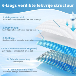 Zindelijkheidstraining wordt eenvoudig met deze super absorberende matjes! Ze beschermen je vloer tegen ongelukjes, neutraliseren geurtjes en houden je huisdier schoon en droog. Ideaal voor puppy’s, oudere dieren en onderweg—altijd een fris huis.